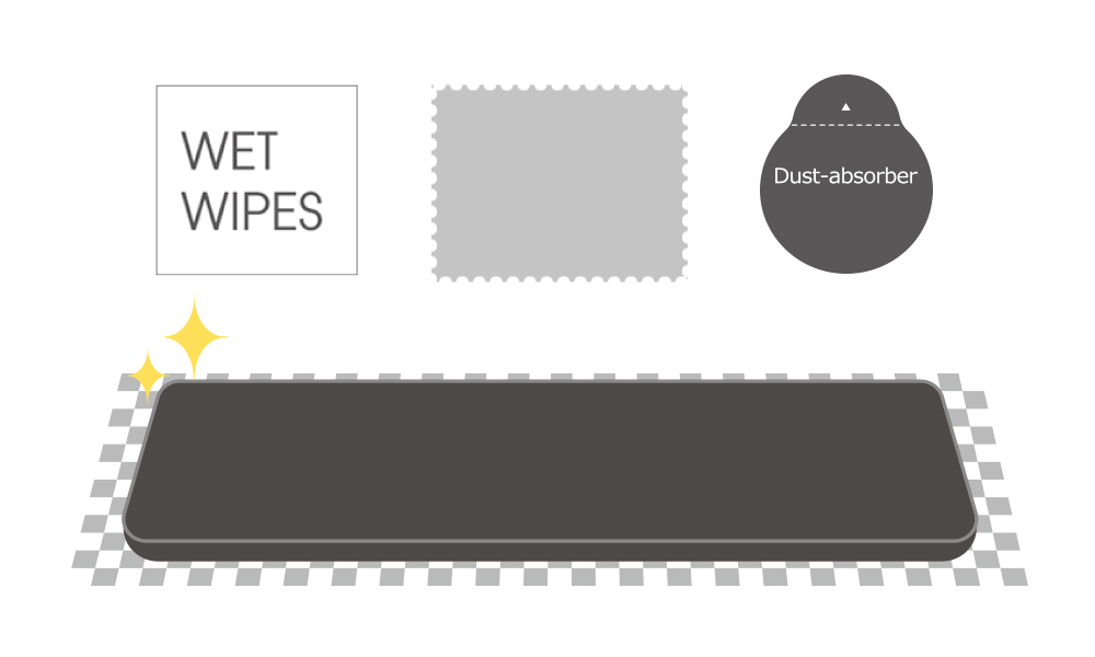 画面にホコリ付いている場合はDust-absorberで取り除いてください。
