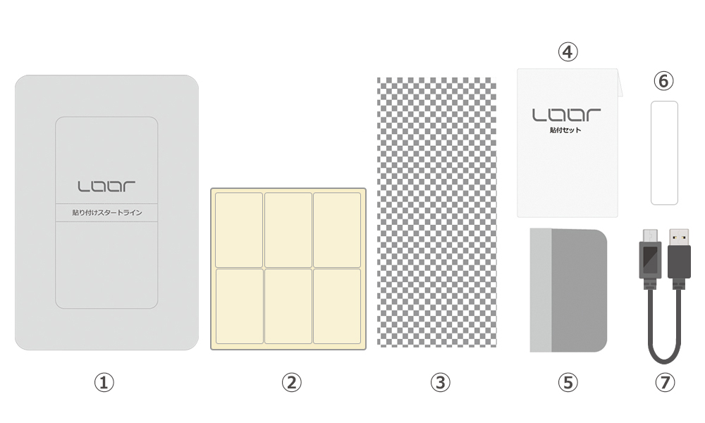 (例:WORKFM05XP01-AR-XZ1,WORKFM05ZTE-AR-RM6)「LOOF」と印字されているフィルムが1枚入っており、滑り止め、貼付用カード、固定用透明シール、硬化用UVライト、ライト用ケーブルが付いているスマホ用紫外線硬化強化ソフトフィルムです。