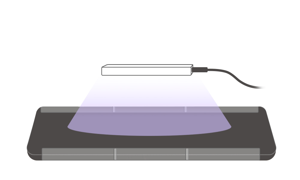 気泡が無いか確認し、付属のUVライトでフィルムを硬化させます。