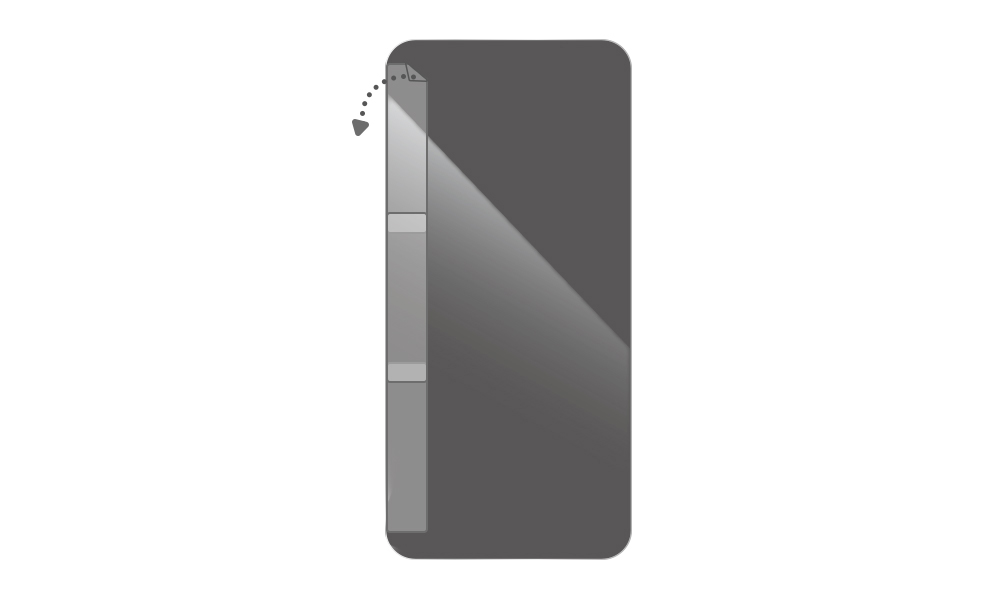 ※スクリーンが曲面となっている、エッジディスプレイのスマートフォンは側面を手で撫でて貼り付けます。