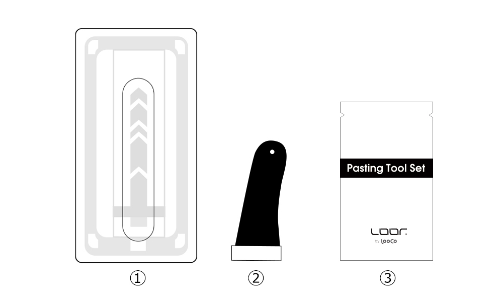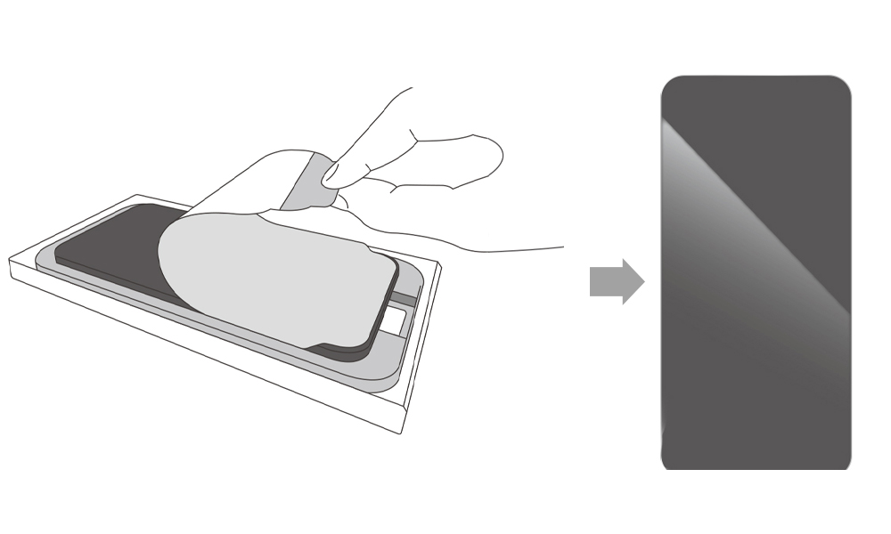 蓋を開き、保護フィルムを剥がしたら貼付用ヘラで気泡を端に寄せて取り除きます。