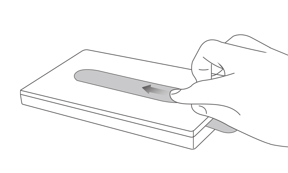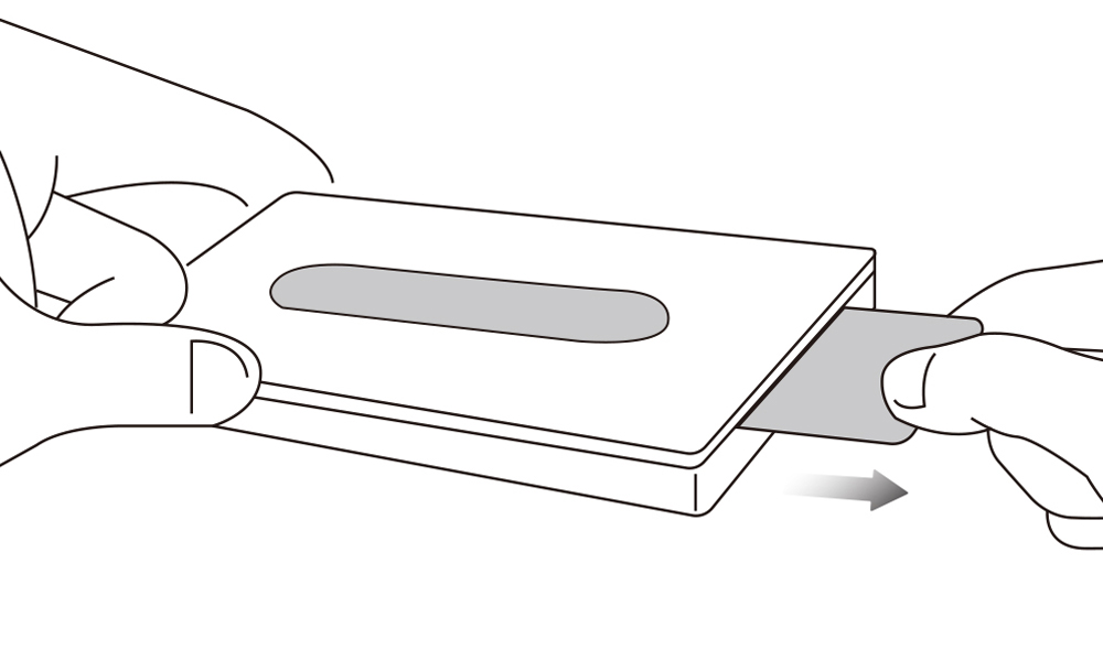 シートのタブがBOXから出るように蓋を閉め、しっかり閉じたことを確認してタブを引っ張ります。
