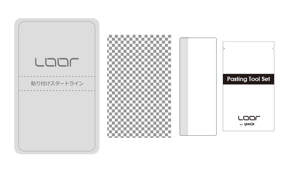 「LOOF」と印字されている柔らかいフィルムが2枚入っており、滑り止めと貼付用カードが付いているスマホ用強化ソフトフィルムの貼り付け方はコチラ!